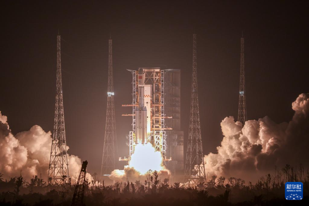 11月15日23时13分,搭载天舟八号货运飞船的长征七号遥九运载火箭,在我国文昌航天发射场焚烧发射,约10分钟后,天舟八号货运飞船与火箭成功别离并进入预订轨迹,之后飞船太阳能帆板顺畅打开,发射获得圆满成功。新华社记者 张丽芸 摄