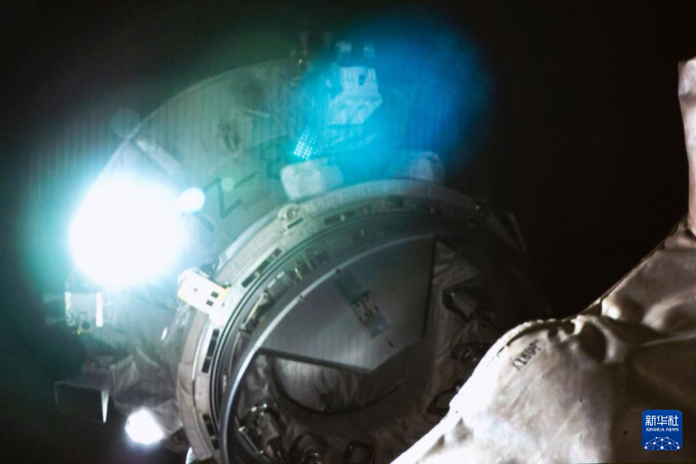 11月16日在北京航天飞翔操控中心拍照的天舟八号货运飞船向空间站组合体挨近的画面。新华社发(韩启扬 摄)